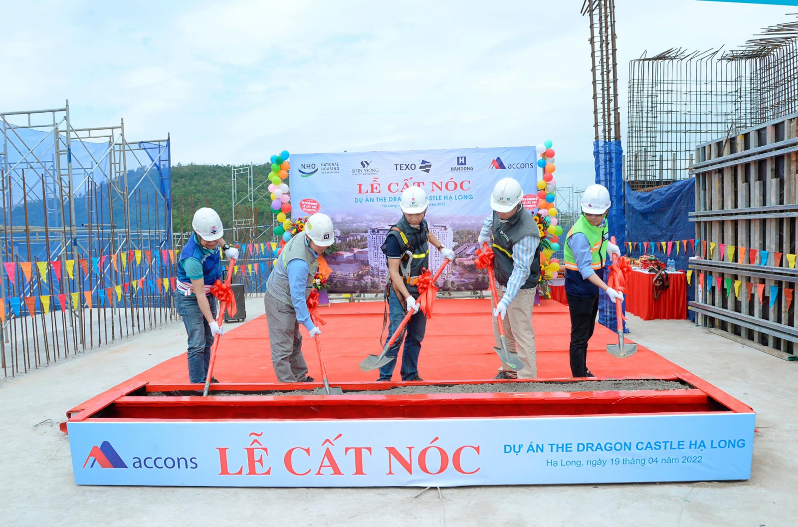 Vượt qua những thách thức thi công trong giai đoạn dịch Covid-19, sáng ngày 19/04/2022 Accons tổ chức lễ cất nóc dự án " The Dragon Castle Hạ Long" tại số 01 đường Cái Lân, P. Bãi Cháy, TP. Hạ Long, Quảng Ninh với sự tham dự của đại diện Chủ đầu tư National Housing, Tổng thầu HanDong ,tư vấn Texo, cùng toàn thể các đối tác……gia dự án. Giữa hơi thở của nhịp sống sôi động nơi phố biển Hạ Long sầm uất, The Dragon Castle Hạ Long bừng sáng như một tổ hợp căn hộ lâu đài tráng lệ, thế địa linh tựa sơn hướng vịnh, Accons Vinh dự làm thầu chính thi công tòa tháp C cao 25 tầng với tổng số 486 căn hộ. Ông Nguyễn Văn Mạnh – Giám đốc dự án của Accons phát biểu “Ban chỉ huy đã triển khai dự án với sự quyết tâm cao, áp dụng các cải tiến mới trong công tác thi công để hoàn thành dự án với chất lượng vượt trội. Được sự tin tưởng và tín nhiệm, chủ đầu tư tiếp tục giao cho Accons và Accons Design hoàn thiện các gói thầu nội thất của công trình.Phía trước chắc chắn còn nhiều thách thức, chúng tôi không cho phép bản thân tự hài lòng với những gì đã đạt được mà sẽ cùng chủ đầu tư đưa dự án Dragon Castle trở thành biểu tượng thành phố, nơi an cư của những cư dân thượng lưu và đẳng cấp.”