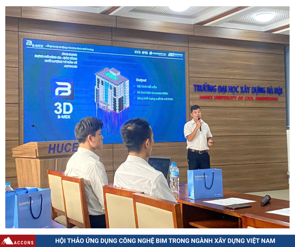 Tại buổi tọa đàm chuyên đề “Ứng dụng phần mềm tự động b tách khối lượng và dựng mô hình BIM 3D từ bản vẽ 2D” trong lĩnh vực xây dựng do Trường Đại học Xây dựng Hà Nội tổ chức. Tọa đàm thu hút sự tham gia của nhiều chuyên gia, giảng viên, sinh viên ngành Xây dựng cùng các doanh nghiệp công nghệ đến từ Việt Nam và Hàn Quốc.
