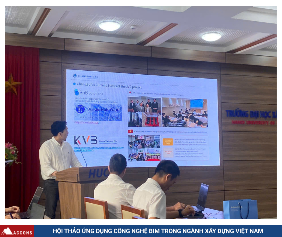 Trong khuôn khổ chương trình, ông Đoàn Văn Cường – Trưởng phòng Đấu thầu – CCM của ACCONS đã trực tiếp giao lưu, trao đổi chuyên môn cùng các chuyên gia trong nước và quốc tế, đặc biệt là các đại diện từ Hàn Quốc – quốc gia đang dẫn đầu về ứng dụng phần mềm trong lĩnh vực xây dựng. Ông Cường đã chia sẻ về những khó khăn & thách thức thực tế trong việc bóc tách khối lượng, lập hồ sơ mời thầu, dự toán và kiểm soát khối lượng tại Việt Nam hiện nay, đồng thời đánh giá cao tiềm năng ứng dụng của phần mềm tự động hóa và mô hình BIM 3D trong việc: